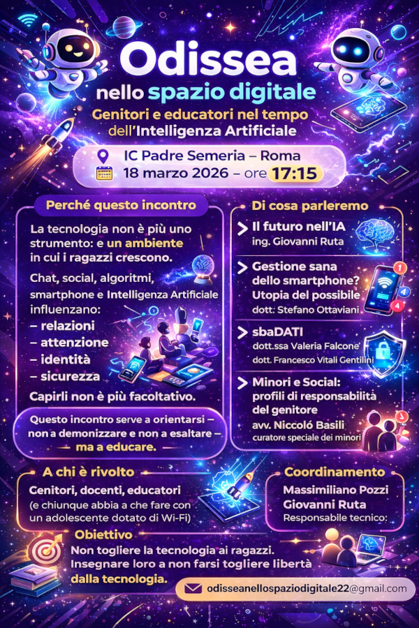 Posted inSenza categoria 2026-03-18: I.C. Padre Semeria Posted by By odissea 8 Marzo 2026No Comments Incontriamo i genitori e gli educatori dei ragazzi incontrati nello scorso appuntamento. odissea View All Posts Post navigation Previous Post 2026-02-26: Avezzano Castello Orsini-Colonna